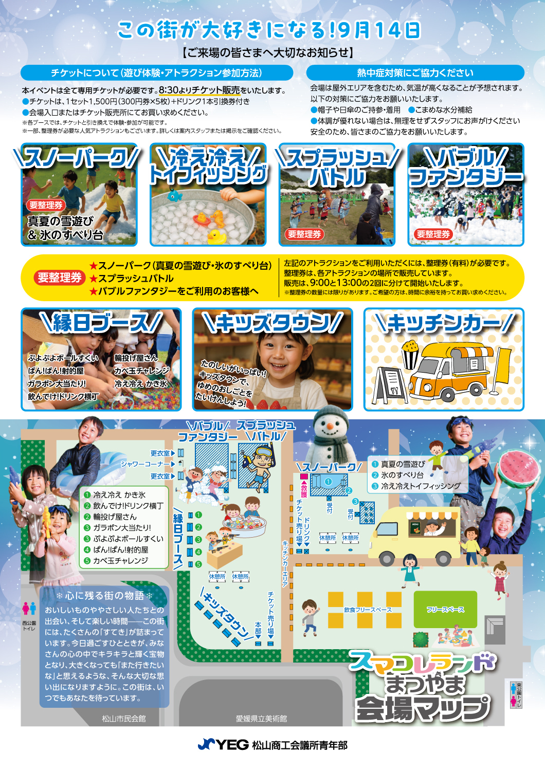 •スマコレランドは入場無料でどなたでもお楽しみいただけます!ただし、アトラクション・縁日・キッチンカー等のご利用にはチケット(有料)が必要です。